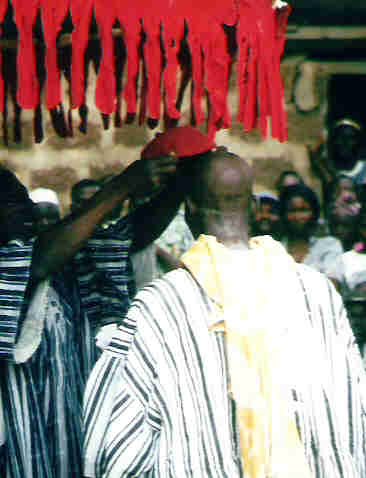 There was an exuberant joy among most of the people present, when Akisibadek stepped up to the Sandemnaab and was "crowned" with the red cap, a symbol of Bulsa chieftaincy.