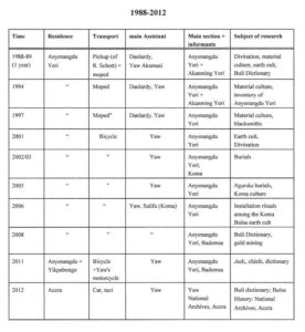 FK: After my exams, my main concern was still centred on my field research among the Bulsa and the publication of the results. I carried out numerous field research projects, as outlined in the tables (see appendix).