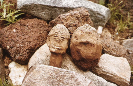Two terracotta heads in a stone heap (Zamsa)
