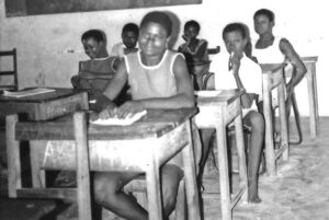 I don’t recall the date of my first day of teaching, but it was probably at the beginning of July 1973 (perhaps the 4th). What happened that day, however, I remember vividly. I wanted to be punctual, but on that day in particular, my watch went haywire. I arrived very late. Mr Atiim showed me, without irritation, to the building where I was to hold a class on the subject of English composition. As I approached the classroom, there was a deathly silence. I feared that the students had left because of my tardiness. In Germany, when a teacher is late, the classroom in question is easy to find: an indescribable noise and students running amok will surely lead the latecomer to their destination. At Sandema, I entered the classroom and found a full class of about 30 students. All were sitting straight and upright in their chairs with their hands on their desks.