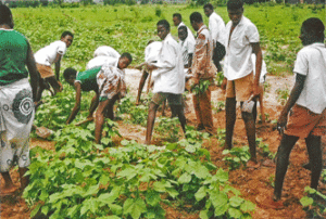 After singing the national anthem and a march-like church song (such as ‘There Is Power in the Blood of Jesus’), the students marched to their classes in closed ranks. The afternoon school hours included the subject of agriculture, in which I observed, a senior student sprayed cotton plants with an insect repellent.